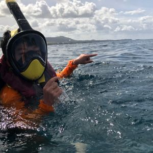 ライフジャケットも着用するのでフルフェイスのマスクをつけたまま立ち泳ぎで下を向くことが難しく、しっかり泳げる子じゃないと海は難しいかもしれません。