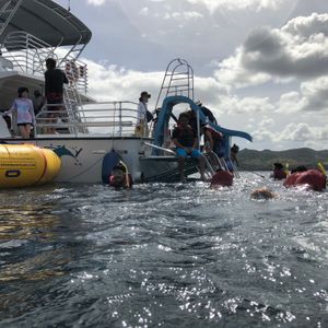 船を停泊して海上トランポリンや水泳も満喫でき参加してよかったです。