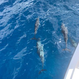 他のお客さんが遅刻してたらしくて、出航までかなり船内で待たされた。出航してからは、日本人スタッフが飽きないように色々と説明してくれたけど、イルカはなかなか見つからずもうダメかなぁと諦めかけた時に発見!船に並走しながら泳いだり本当にすぐ近くをグルグル回りながら泳ぐイルカに家族全員が大興奮やったし、船内に準備されていた紙パックのオレンジジュースがメッチャ美味しかった。ただ、泳げない孫達にスケルトンボートで魚を見せてやりたかったけど、ボートの準備が無かったのが残念やった。