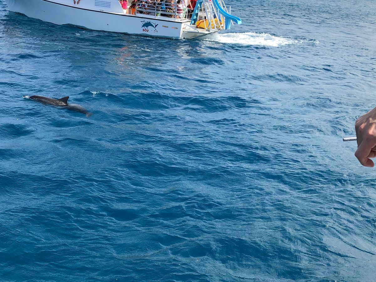 船に乗るスペースはキツキツでしたが、イルカも見れたし良い経験になりました。海での遊びは縄につかまっていなきゃいけなくて、縄が一本しかなく移動が大変でした。滑り台とトランポリンもいまいちでした。