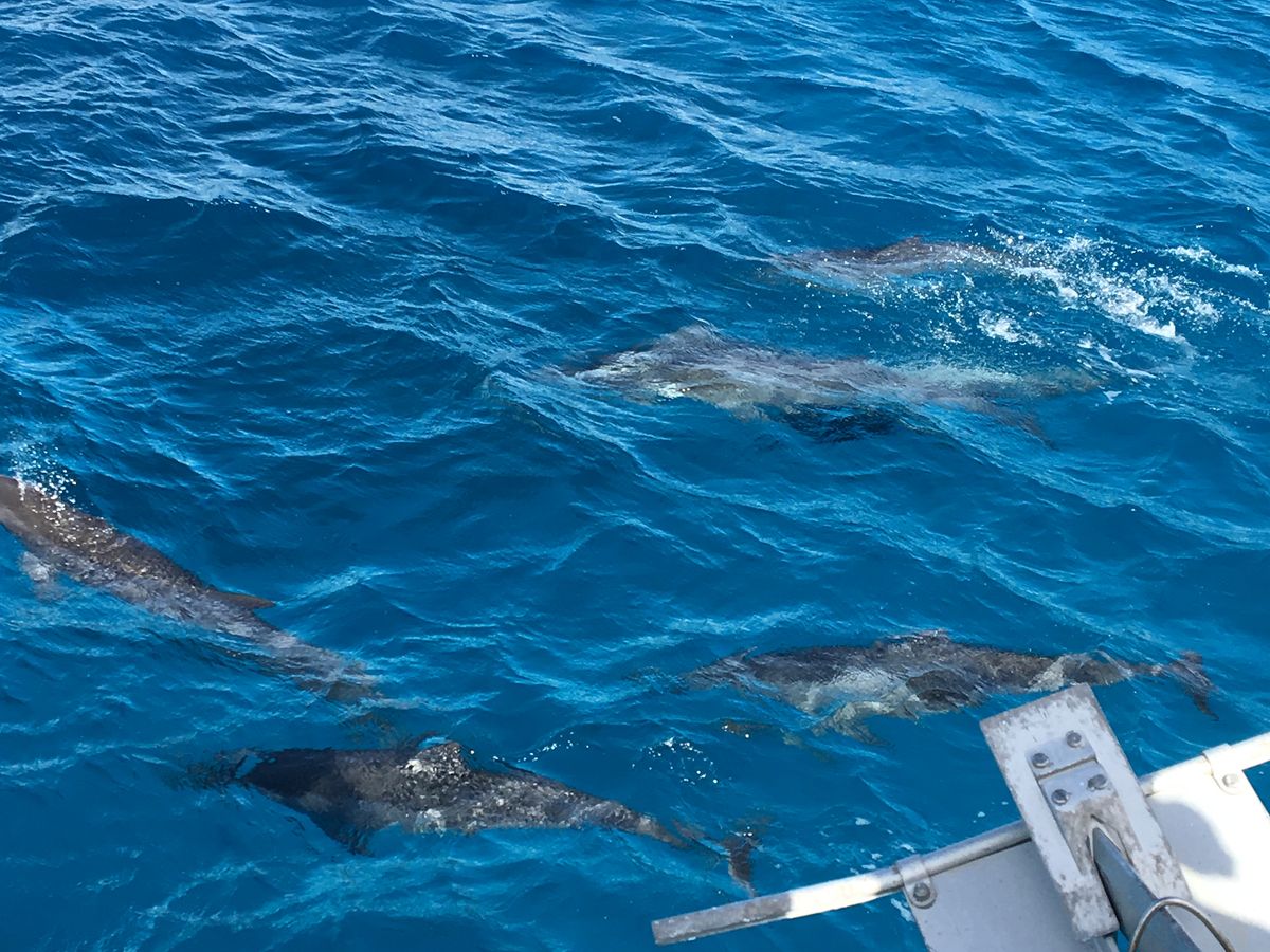 イルカのベストシーズンは12月、1月だということでしたが、数えきれないイルカに会えました!ジャンプしたり、ボートの波でサーフィンしてるかのように、遊んでいるイルカも見ました。