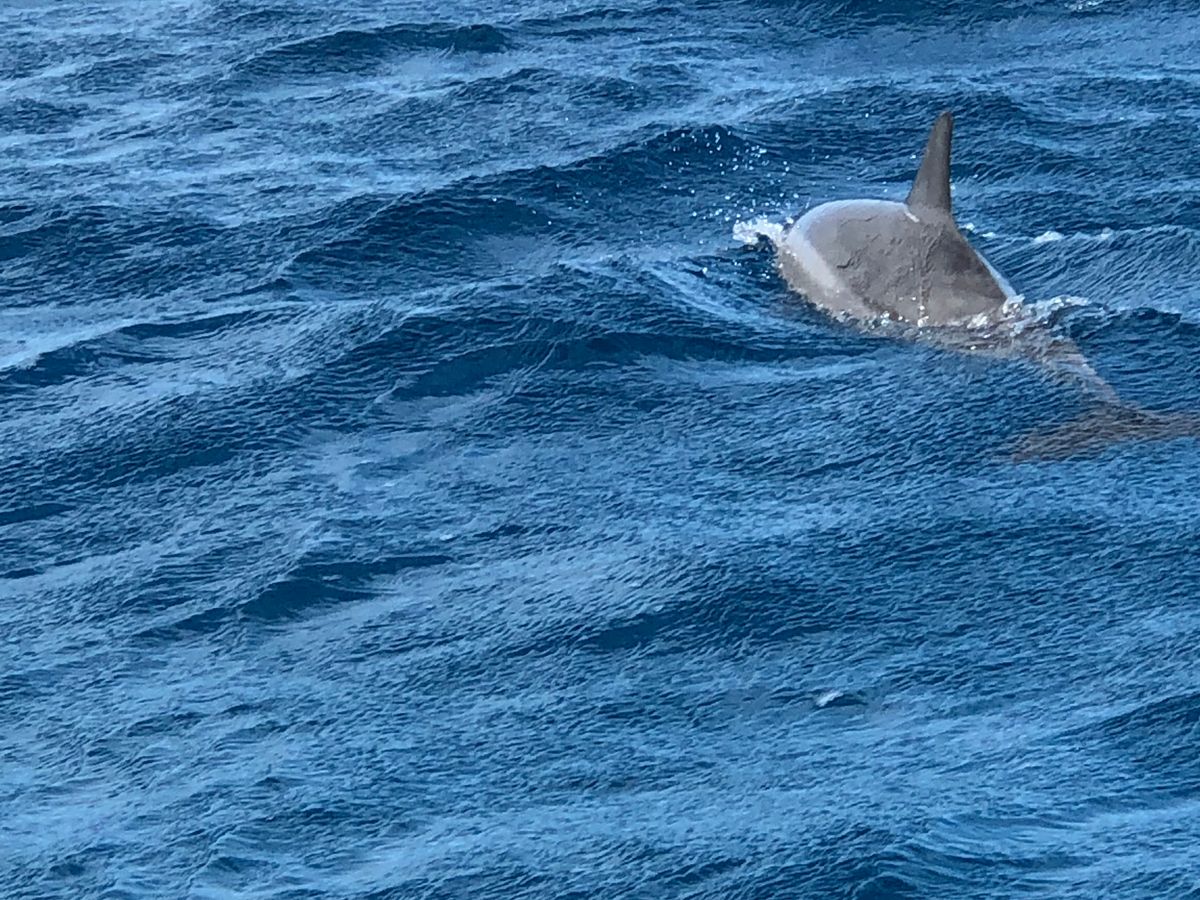 肝心のイルカウォッチングですが、波の合間から時折ジャンプしたり、尾ひれ背びれをのぞかせてくれました。水族館ではなく、自然の中にいるイルカを見せてあげられたのが良かったです。