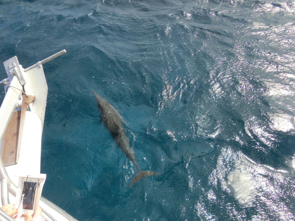 イルカのポイント迄は遠くて、船酔い寸前でしたが、イルカに会えてテンションがあがりました。