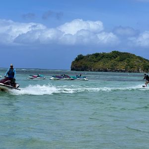 遅便のバスにしたらホテル9時半のお迎え。現地に着くと20人程度ベンチに座りパラセイル待ち。2.30分ほど待ってやっとパラセイル。船に乗ると流れ作業でパラセイル。スタッフさん達はとてもフレンドリー。その後バスに乗ってビーチへ。説明で帰りは3時のバスと案内され一安心。午後からは段々と人が減りますよと追われた通り2時前後にはすいてきた。ジェットスキー、スクローラーは2回ずつ出来た。もっとやろうと思えば出来たと思う。陸では日本人のスタッフさん、海では現地のスタッフさん。言葉の壁もほぼなく楽しめました。