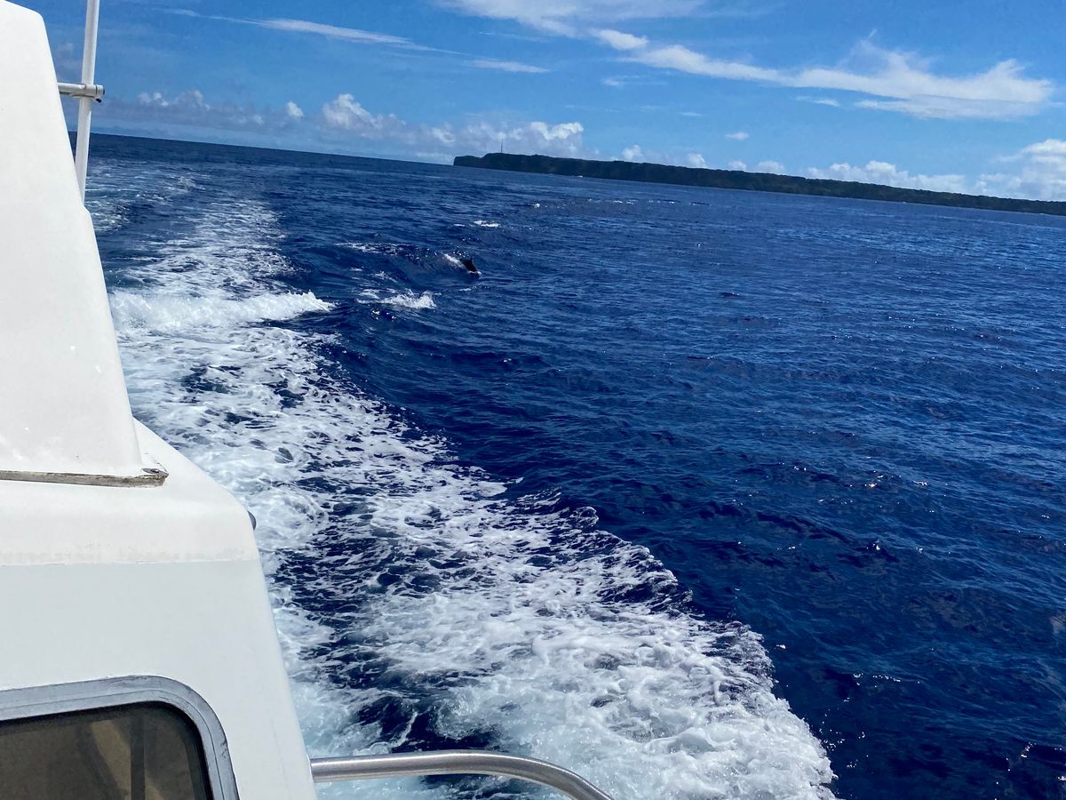 ゆっくりと進む船の周りに一緒に泳いでくれるイルカはとってもかわいかった。