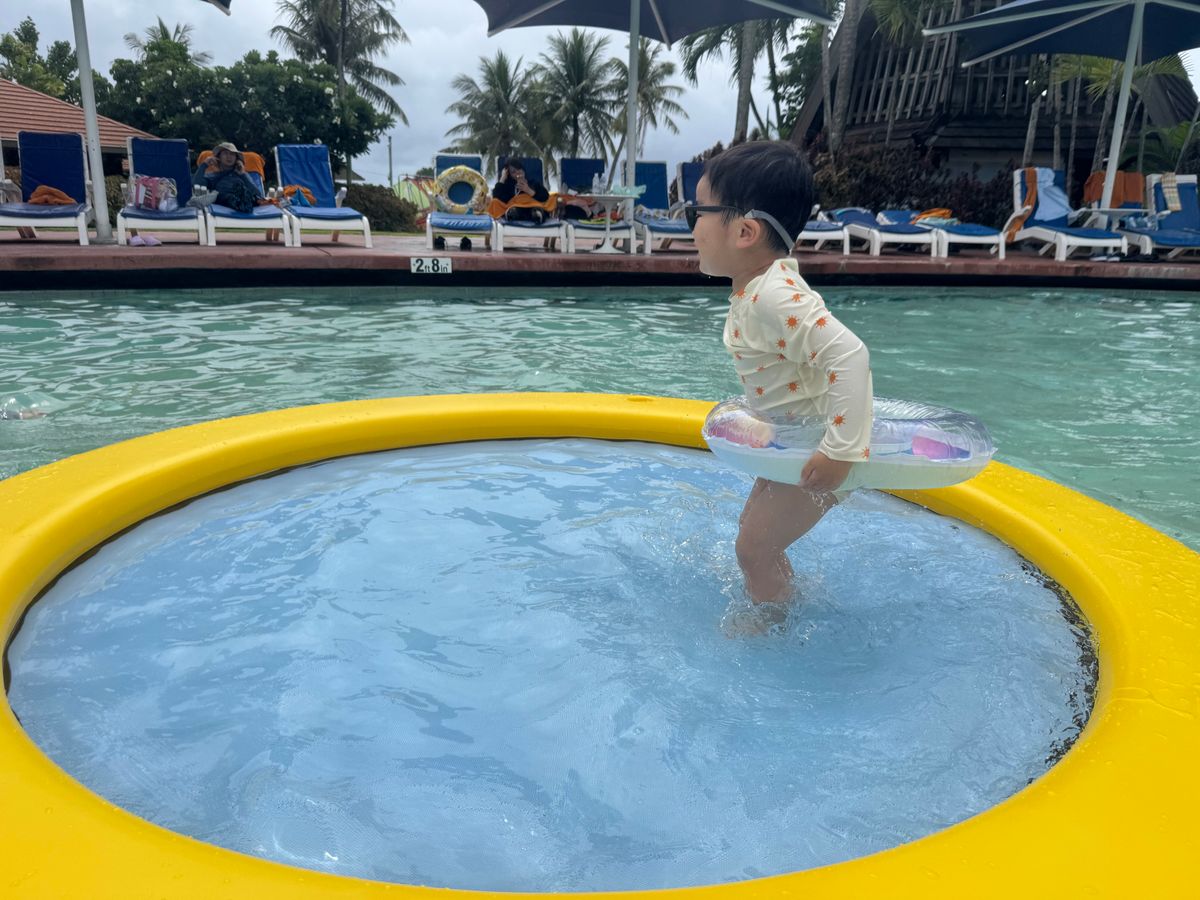 その後はアクアパーク。シュノーケリングや滑り台がありましたが、3歳と6歳の子どもたちはあまり楽しめなかった様子…。