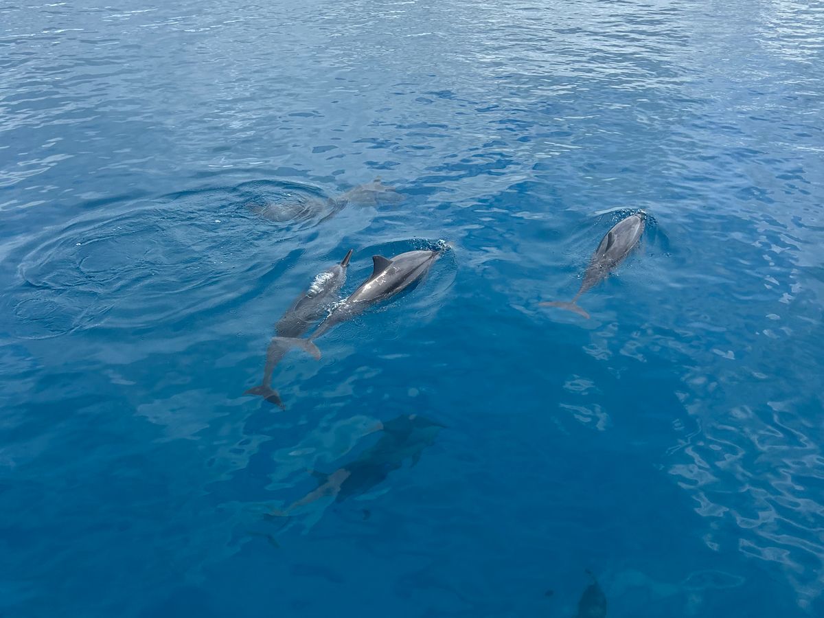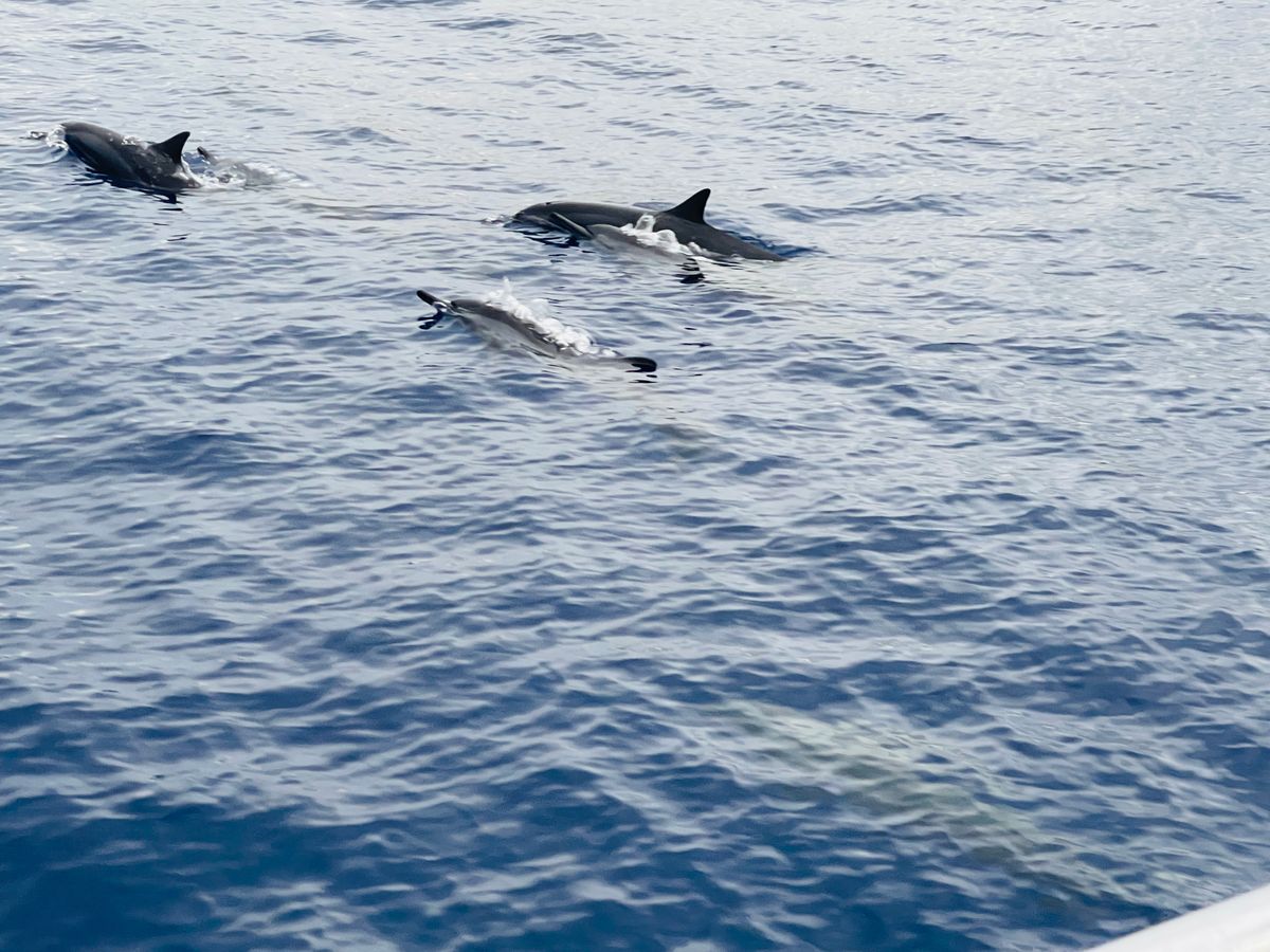 イルカが思ったよりたくさん見れて、船のすぐそばを沿いながら泳いでた!!