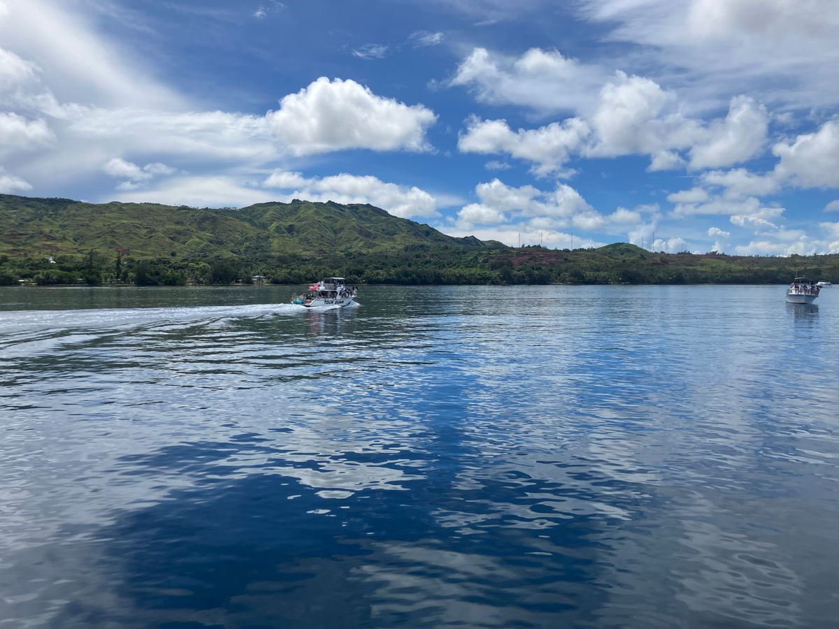 ご参加ありがとうございます ツアーは何とか楽しんでいただいたみたいで良かったです。この日 グアム沖に発生した熱帯低気圧の影響であまり海の状況が良くありませんでした。船酔いさせて申し訳ございません。またの御利用 スタッフ一同心よりおまち申し上げております