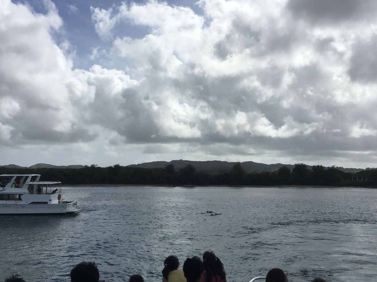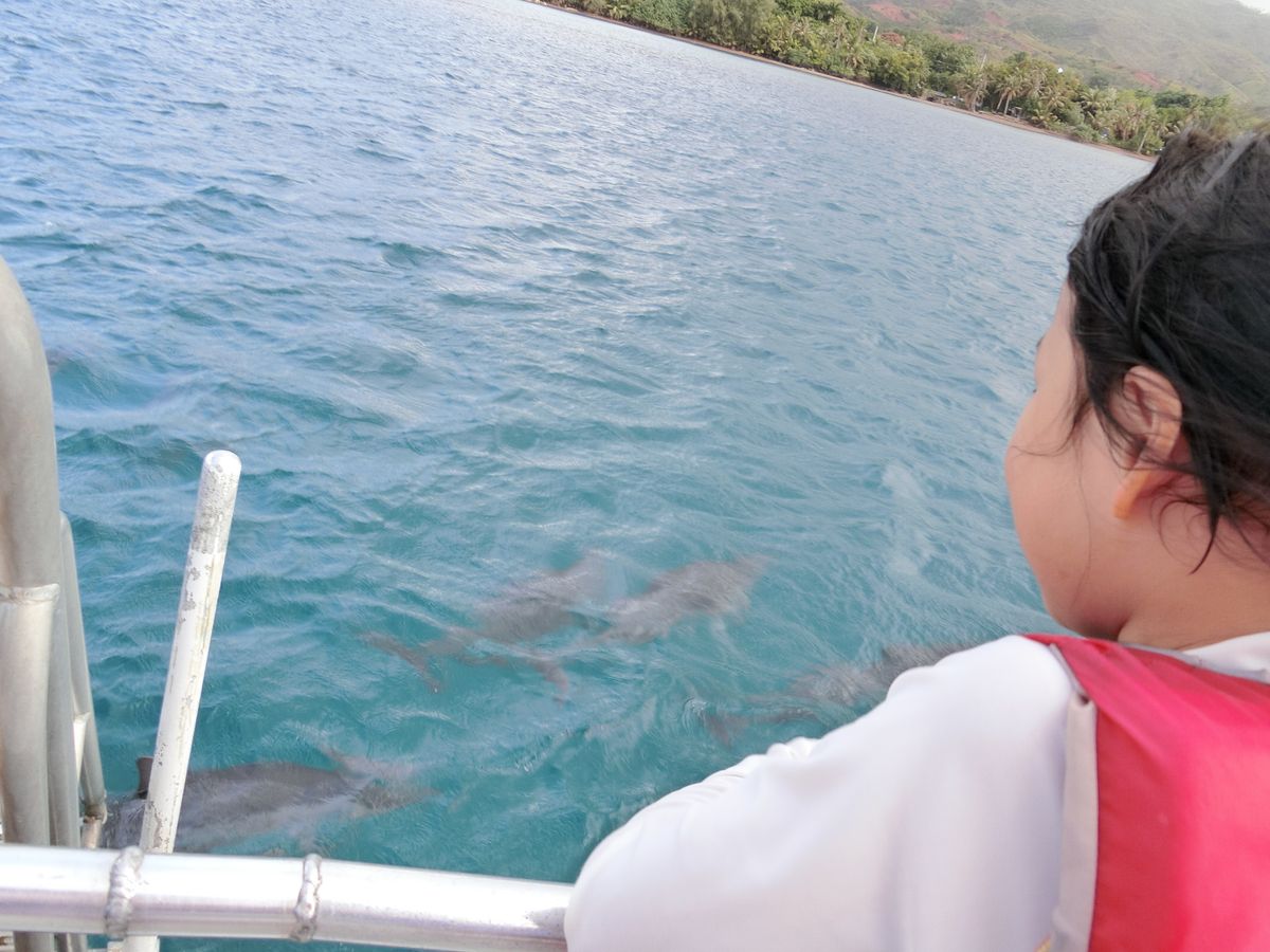 イルカは小さなのがちょっと見えただけで、一生懸命探さないと見えませんでした。小さな子供は見えたのかどうか…。オーストラリアで参加したイルカウォッチングは沢山のイルカが船の周りをジャンプしていたので残念でした。子供達に見せたかった物を見せられなかった。これがグアムの標準なのか、たまたまこれしか見れなかったのかはわかりません。