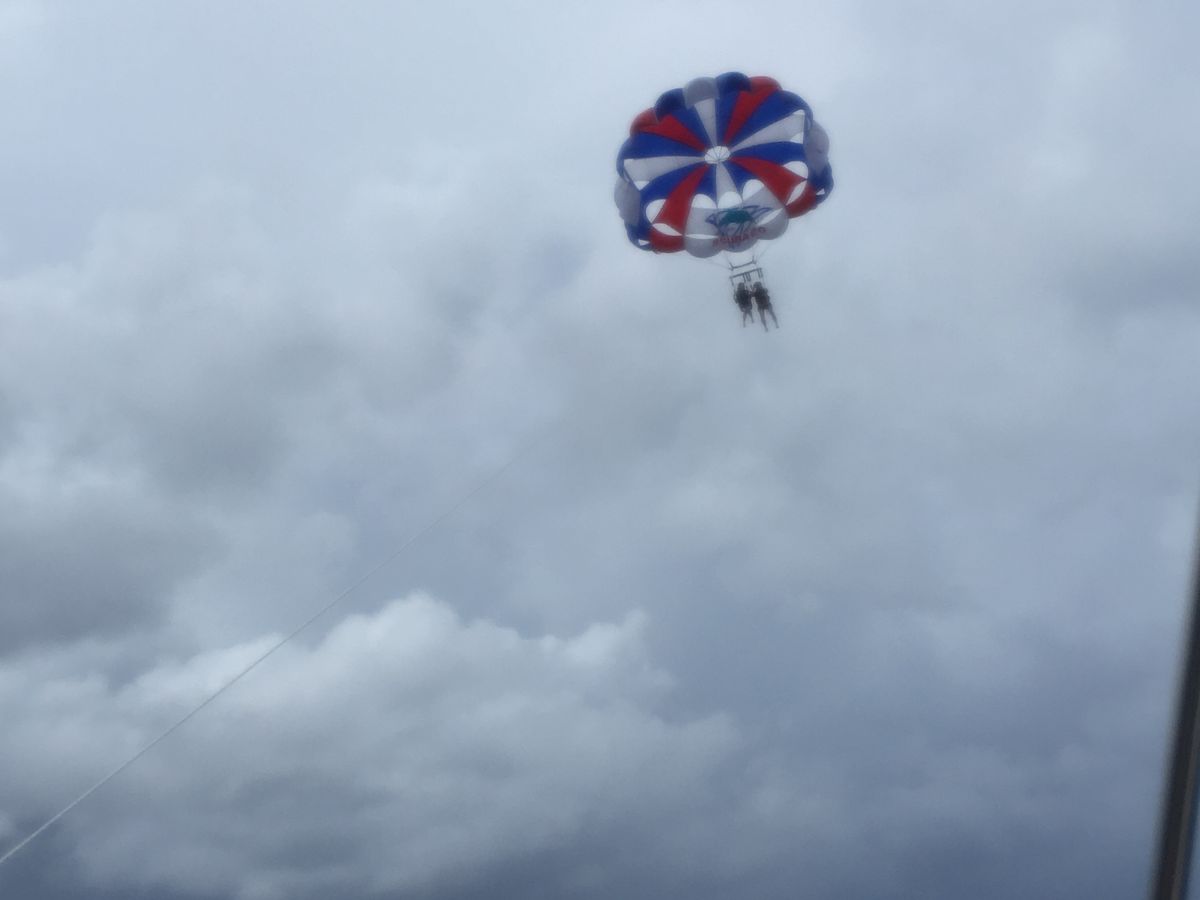 年齢制限ギリギリでパラセーリングに挑戦。高さも余り感じず、とっても気持ち良かった~