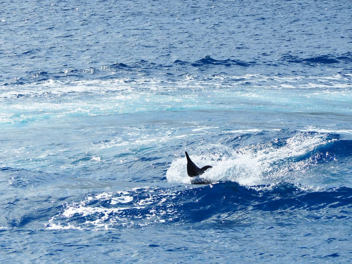 港を出て早い段階でイルカに遭遇。