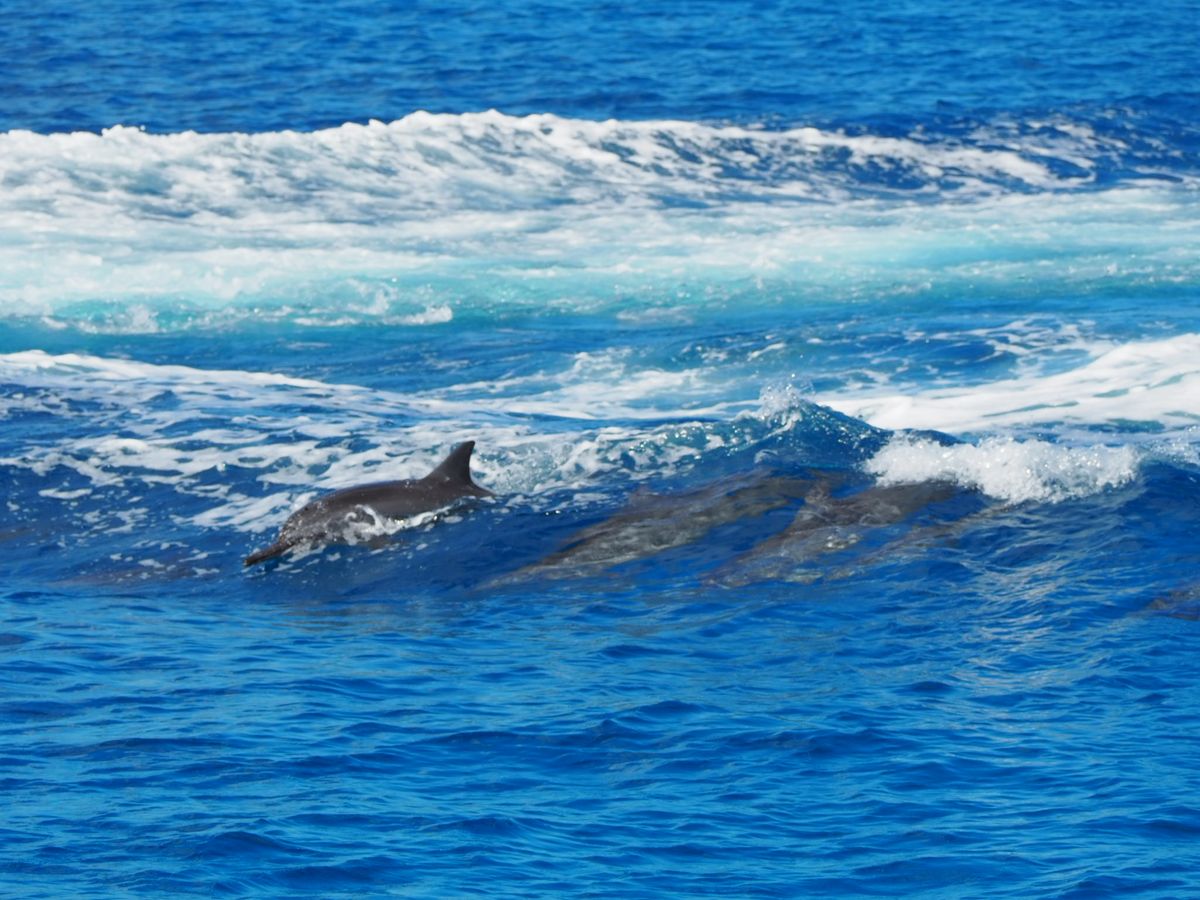 イルカはボートの下を潜ったり、ボートの波あとで波乗りを楽しんでるみたいで見て楽しかったです。