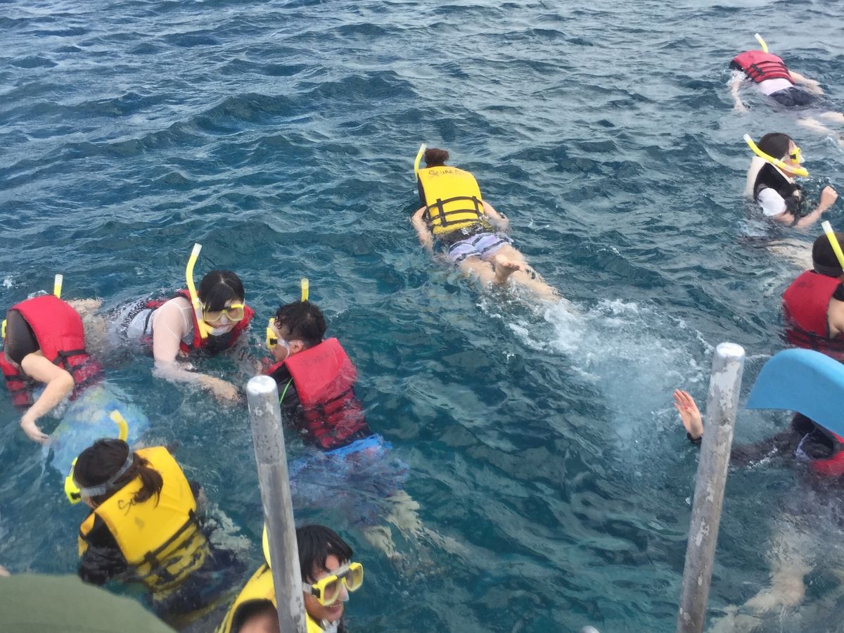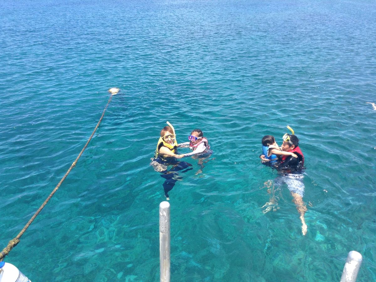シュノーケルは初体験でしたが使い方など丁寧に説明してくれるので初心者でも迷わず楽しめました。海の中にはいろんな種類の魚がたくさん泳いでいてシュノーケルって飽きないですね!滑り台も楽しかったです!