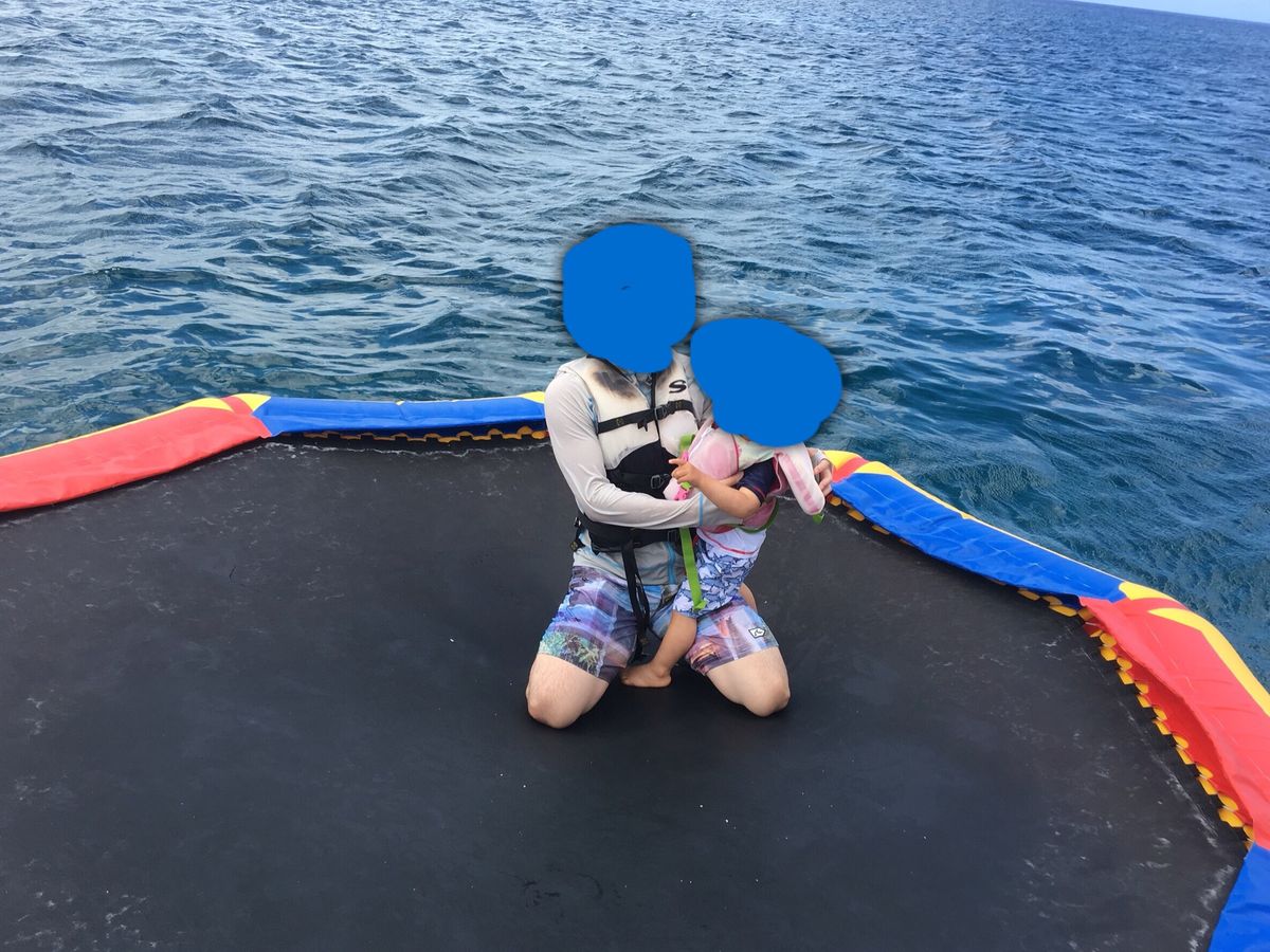 シュノーケリングは魚が少なかったですが、トランポリンや滑り台で楽しみました!
