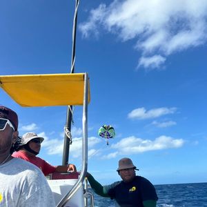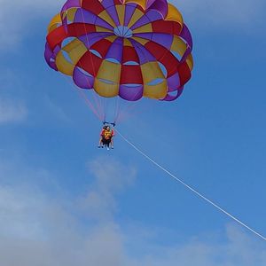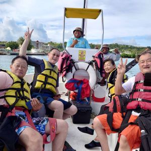 60才〜67才のシニア5人で1日フリーで参加しました!最初にパラセーリングをやり、空飛ぶ楽しさに大盛りあがり!場所を移動してビーチでジェットスキー4回、ウェイクボード、バナナボード、スクリューマー、サップと好きなタイミングで何回やってもOKなので、一日フリープランは最高でしたー‼︎