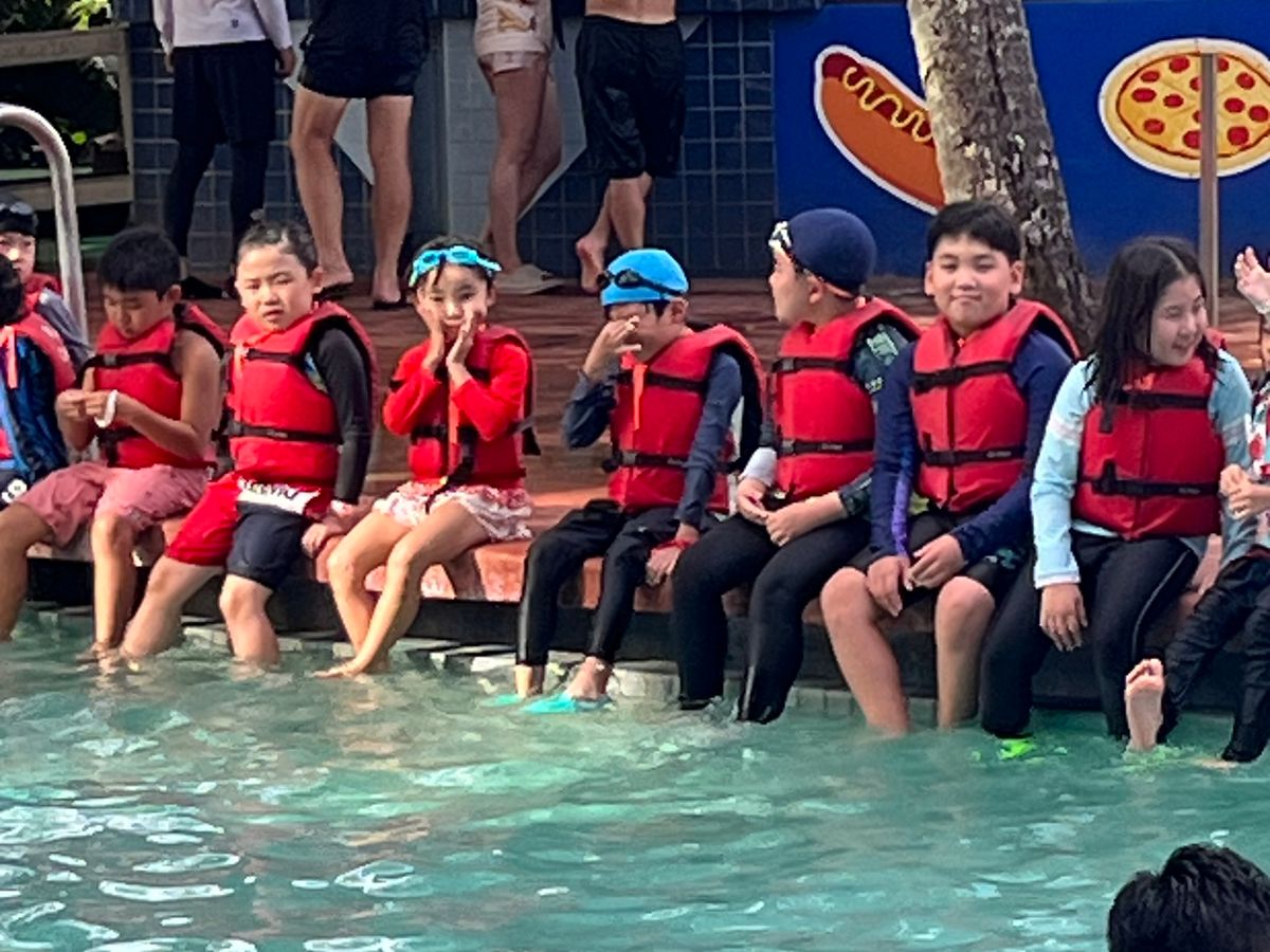 また、キッズ用のシュノーケリングクラスも利用することができ(要予約)、まだ泳ぐことのできない子供も初めて間近で熱帯魚を見ることができ、楽しんでいました。