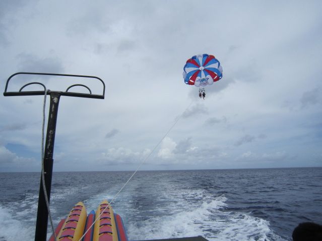 パラセイリングもほどほどの高さでよかったです。ただ船で一人のスタッフが荷物スペース?のようなところでやることがない間は寝そべっているのが少し気になりました。