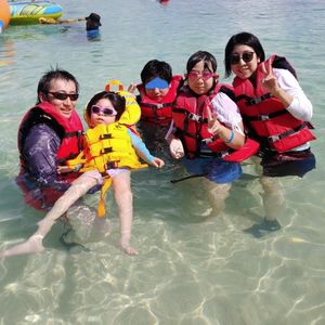 海に飛び込む滑り台や海の上のトランポリンもとても楽しめました。水中メガネで見る(シュノーケルも貸してくださいます)海の中のお魚が自然の水族館のようで感動しました。子どもも大喜びでした。