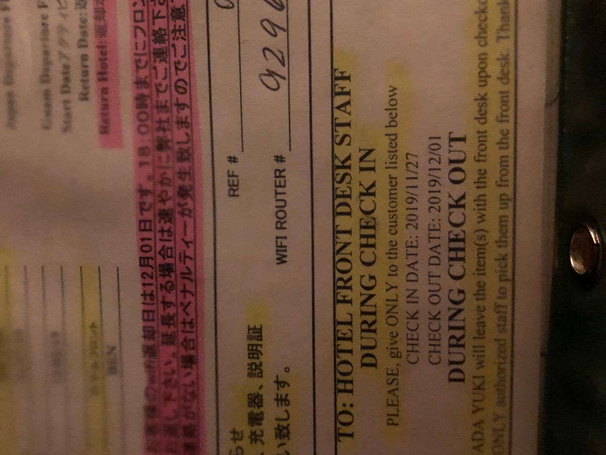端末と充電器キットに、伝票も付いていて ホテル側との連携もきちんとされている印象でした。ホテルに寄っては、部屋のWifiが有料なところもあるので、次回も 必要が有ればリピートします。