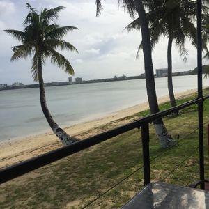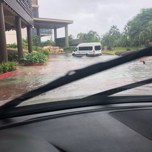 グアムの道路は濡れている状態だと本当に滑りました。とくに歩道側(右端)の車線は道がデコボコしていて水溜りも多いので右左折時以外は走らない方が良いかもしれません。