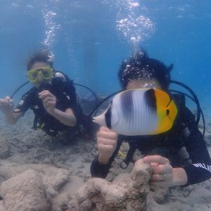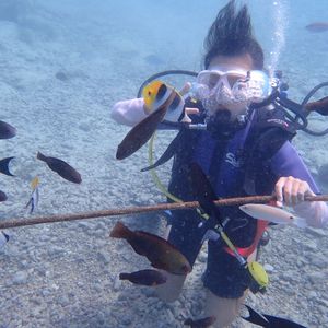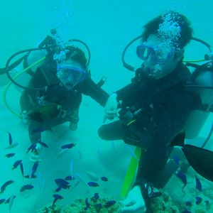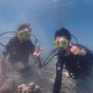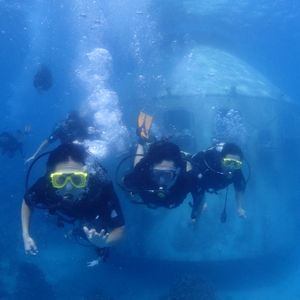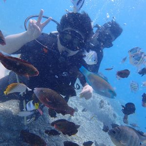 友人と二人で参加しました。すごく楽しかったです!中学校の体育の授業を最後に、5年ほど泳いでおらず、不安だったのですが、無事15mもぐることができました!ナオコさん、ミキさんがフレンドリーで丁寧に教えてくださったので、試験も意外に即とれました。無事二日目の午後はフリーになったので、ターザンのプールで遊ぶこともできました。これからはダイビングにやみつきになりそうです。本当にありがとうございました!