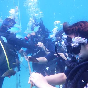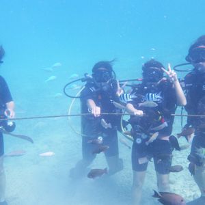 何度か体験ダイビングは経験していたのですが、是非Cカードを取得したいと思い、大学生の娘とふたりで参加しました。一日目は午前中はビーチで2ダイブ、午後はビデオやテキストでお勉強。私は何十年ぶりのテストに緊張しましたが丁寧に教えて頂いて無事学科は合格出来ました。二日目は自分で器材のセッティングをしてビーチで2ダイブ。2ダイブ目は体験ダイビングのグループと一緒でしたが、持参したデジカメで撮影も出来ました。一日目はミキさん、二日目はナオコさんが担当でしたがお二人共話しやすく素敵な人で、本当に楽しい2日間でした。次回はファンダイブでまた来たいです。