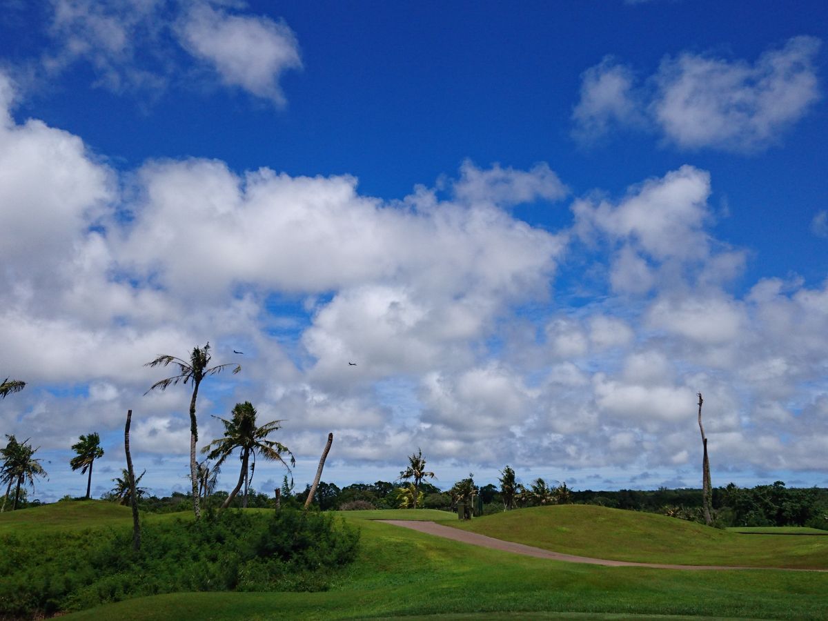 初めてのグアムで選んだのが、このグアムインタナショナル・カントリークラブ。この季節は天候に恵まれ、しかしある程度の雲もあったため日差しが厳しすぎるということもなく、ゴルフはおすすめかもしれません。ホテルからは送迎で10~15分と近くて便利。感心したのは食堂で、まず飲み物を買うと、クーラーボックスに氷を入れて貸してくれたことが、とてもうれしかった。また昼食は、ざるそばとチキンカレーを頼みましたが、どちらも日本と同じ味だったのもうれしい限りです。コースは、幅が広くてOBの心配がありません。一方で、池が戦略的に配置されていて、絶対に入れるわけがないと思っていてもついつい打ち込んでしまいますので、気をつけましょう。