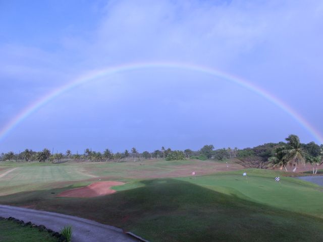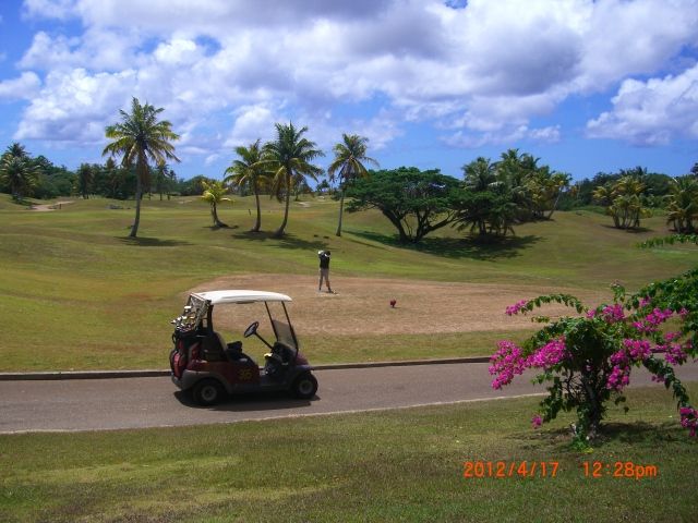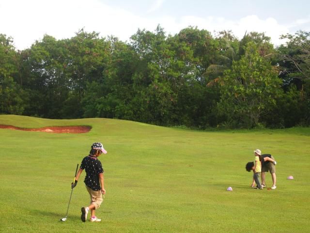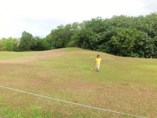 ・朝一番でのプレーで家族ずれには気兼ねなくできてよかったのですが、スタート前のスコールで芝はドロドロでした。付いた赤土を洗うものやふく布もなく日本とはかなりサービスレベルが違うと感じました。