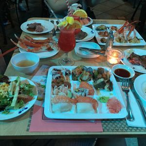 多国籍なお料理、お寿司やおうどんもあり、子供も安心でした。デザートアイスも8種類ほどあり、セルフサービスで食べ放題で嬉しかったです!