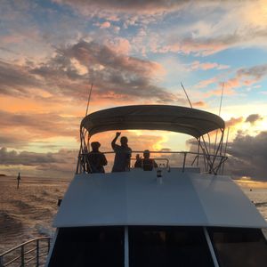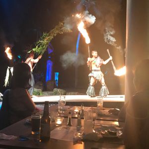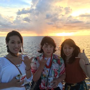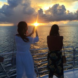 イルカウォッチングに続き2日連続でフィシュアイさんにはお世話になりました。サンセットの天候は曇りがちな空で、夕日を望めるような雰囲気ではありませんでした。自然相手では仕方がない事だと思っていましたが、心地よいクルージングの風を受けて大海原に出るとそこは幻想的な空間が広がっていました。雲の切れ間から太陽が沈みその横ではシャワーが降り注ぎ、大空はオレンジ色に燃えていました。大自然に感謝です!船の上では飲み物や食べ物も出して頂きました。スタッフの方々もとても親切な人ばかりです。ポリネシアンショーでは前日からお世話になったスタッフが舞台の上でパフォーマンスを見せ頂き驚き感動しました。他でも見たことはありますが、フィシュアイで見たポリネシアンショーはどこよりも最高です♡