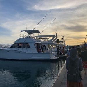 カツオ、トビウオ、サーモンなどの魚が跳ねる姿を見つつ、サンセットはタイトル通り綺麗に見られませんでしたが、アテンドしてくださる方のステキなギターと生歌が嬉しかったです(^^)