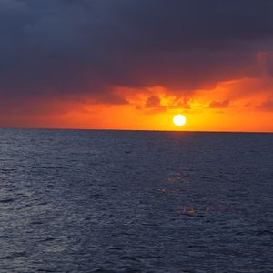 浅瀬ではエメラルドグリーンのグアムの海ですが、船で沖へ出ると紺碧が広がり、色の深さの違いを強く感じました。イルカにも遭遇し感動!沈む太陽が大きくて良い思い出となりました。その日は満月だったので、夜まで満喫できましたよ ♪*゚