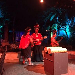 友人4名で参加しました。参加者の中にその昔サンセットディナーショーというのに参加したことがあるのですが途中で気持ち悪くなったりしたので躊躇していましたが別々だったので参加しました。クルーズした後にポリネシアンディナーショーなのでよかったです。ディナーもとても種類が多くスィーツもたくさんありよかったです!ショーも今までのポリネシアンショーの中で一番よかったように思いました。家族や大勢で行かれる方にもおすすめだと思います。