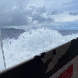 ただし、波が高くあちこちで子供はおろか大人もゲーゲー吐いている中、クルー2人は2階?の運転席に篭りきりで、航行中船内の様子を気にかけることは一度もありませんでした。