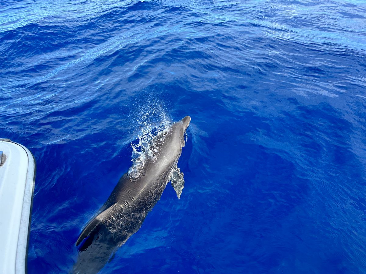 何頭ものイルカには出会えなかったけれど(最大で2頭)クルーザーのスピード感と深い海の青さにイルカがあらわれ、非現実感でいっぱいになりました。