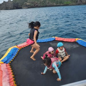 海のアクティビティもシュノーケリングなど楽しそうでした。子供はトランポリンで楽しみ、海に入るのを怖がって居たら、スタッフさんがパンをくれて、魚の餌やりをさせてくれました(o^^o)