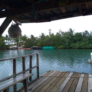 英語ガイドだったので、小々不安だったが、桟橋で11:20にここに帰れ、のみ聞き取れた。500メートルくらい歩いて、桟橋の端っこに展望塔が設置されており、各種魚がえさの周りにたむろ、独特の彩の魚たちに女房殿感激、集合時間にぎりぎり間に合った。