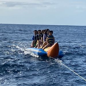 イルカウォッチングは、残念ながら見れなかったけど、その後のバナナボートやシュノーケリングはとても楽しかったです。シュノーケリングは、波が荒かったけど綺麗な魚がたくさん見れました。初めてのシュノーケリングでしたが、スタッフの方が親切に教えてくださり、5歳の子供も一緒に楽しめました。また参加したいなと思うくらい良かったです。かなり波が荒いので酔い止め薬を飲んでて正解でした。イルカが見れたら最高でしたが、綺麗な景色も見れたし満喫できました。