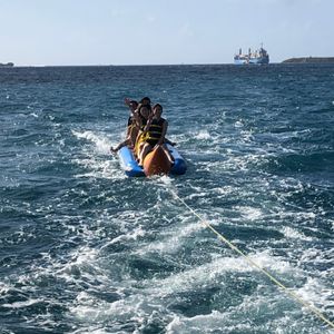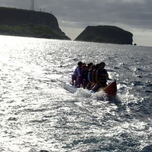 イルカを見た後は湾内に戻りますが、その時にバナナボードを乗ります!