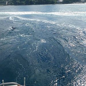 今回は船の後ろをイルカが波乗りして遊んでる様子が2回も間近で観られたのが良かったです。