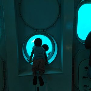イルカウォッチングはデッキに出て見れるのですが場所によっては子供の背丈の位置で海水が飛んで来てて大人は全くかからずに済んでも子供は頭からビショビショになってました。