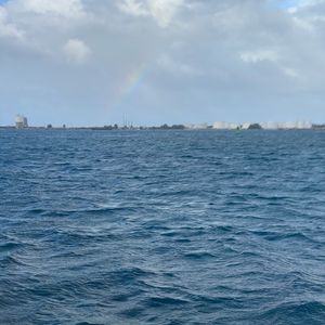 朝から雨が降ったり止んだりと不安定で風邪も強かった為、見られるか心配でした。心配的中でイルカは残念ながら見れませんでしたが、船長さんが他に出ている船としきりに連絡を取り合い一生懸命に探してくれていましたし、他のスタッフの方々も雰囲気を良くしようと話しかけてくれたり、写真を撮ってくれたりと気を使ってくださいましたので、楽しい時間になりました。ホテルに戻るとイルカが見られない時に頂けるTシャツを着ている人を何人か見たので、この時期は見られない事もしばしばあるのかもと感じました。