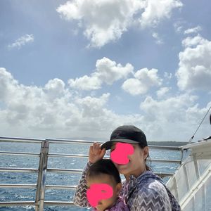滑り台や、トランポリン、お魚達を間近で初めてみて、大興奮。帰りも波が荒かったのですが、船の先頭で一生懸命イルカを探していました。