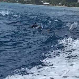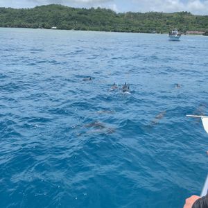 予想外に近場、タモン湾のすぐ沖合でウォッチング。多数のイルカが船を追いかけて来てくれました。ガイドさんも楽しく親切な方で、本当に素晴らしかったです。