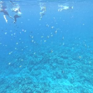 イルカを見た後のシュノーケリングも、南国の魚が良く見えて楽しかったです。私は素潜りが好きなので、ライフジャケット着用義務が残念でしたが、小さな子供や泳ぎに自信の無い人にとっては十分満喫できるかと思います。