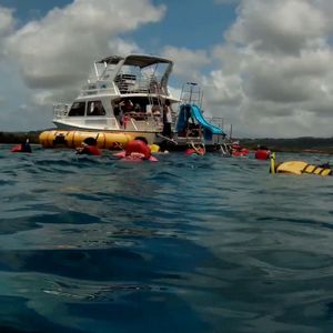 イルカさん達とお別れし、再び船は進み、ガアン・ポイントの沖合ぐらいまで来たところで、オーシャンパークの時間。ここも30分程度でしたが、船上滑り台や、トランポリン、シュノーケリングを満喫。ただ、シュノーケリングは船の周辺でちょこっと見るだけなので、シュノーケリングがメインのプランと比べると物足りないと思います。それでも、綺麗な海と魚を見られて、トータルとしては十分満足です。
