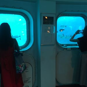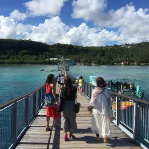 3歳の子供がいたためこちらのプランにしました。海中展望塔まで駐車場から海にかかった小さな桟橋を渡ります。橋の上からでもお魚が見えますし、遠浅なのかシュノーケリングの人達が橋の下の海を歩いています。海中展望塔は大人にはまったく物足りないですが、3歳児にはちょうどいいです。ちゃんとお魚が見られます。イルカツアーのおまけといった感じです。