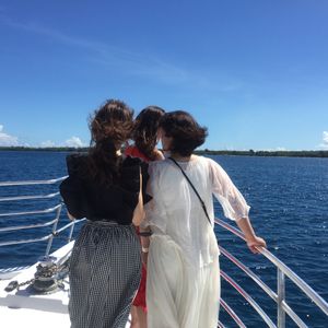 自然相手なのでイルカが見られないこともあるようですが、クルージングだけでも気持ちよく楽しめると思います。船に酔いやすい方はちょっと大変かもしれないですが、海に入りたくなかったり海に入れない方が海を満喫するにはとても良いと思います。船には日よけが付いていますが、座る場所によってはずーっと日が当たるので、気になる方は帽子、サングラス、日よけの長袖があるといいかなと思います。あと、船でマンゴージュースが頂けますが、甘いものが苦手な方はお水など持っていくといいと思います。