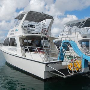 イルカにも会え、オーシャンパークでのボートシュノーケリング・水上すべり台・トランポリンを楽しめました。