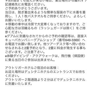 天候などを考えて前日予約になってしまいましたが、ホテルまでの送迎付きで即予約ですぐに時間等の連絡がきたし、スタッフさんたちもみんなすごくいい方で、参加させてる方達もみんな日本の方で安心でした。